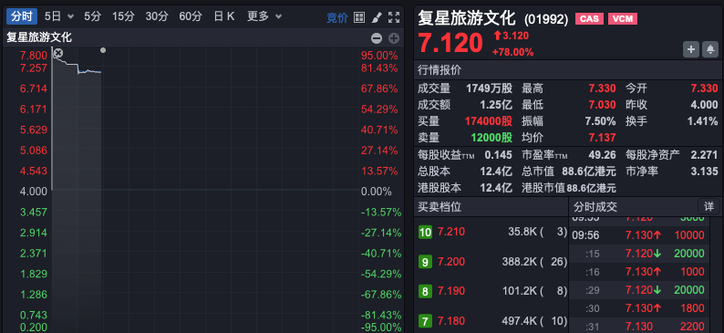 12月11日,A股、港股集体飘红。其中,恒生科技指数盘中涨逾1%,恒指涨0.68%。 房地产板块飘荡走强。铁心发稿,栖霞开辟、中华企业、津投城开等多股涨停,绿地控股、荣盛发展、大悦城、光明地产、城投控股等涨幅居前。 港股内房股也集体走强,融创中国涨近5%,富力地产涨超3%。 上海国企创新见识股盘初活跃,上海物贸、第一医药、市北高新、开开实业、金枫酒业、上海九百、上实发展等多股涨停。 音信面上,《上海市救援上市公司并购重组活动决议(2025—2027年)》昨日发布。其中漠视,力求到2027年,落地一批要点行业代表性并购案例,在集成电路、生物医药、新材料等要点产业领域莳植10家傍边具有海外竞争力的上市公司,酿成3000亿元并购交往边界,激活总钞票超2万亿元,累积3—5家有较强行业影响力的专科并购基金贬责东说念主。 热点股方面,A股一鸣食物盘中波及涨停,录得12连板,不外铁心发稿涨停板已被通达,最新涨幅为9.19%。 港股复星旅游文化高开83.25%,最新涨幅为78%。 音信面上,该公司规画以契约安排时势非凡化,董事会漠视以每股7.80港元的价钱回购股份,较停牌前收盘价溢价95%。非凡化后,公司将赓续防守现存业务运营,无规画进行紧要交流。此举旨在开释鼓舞价值,杀青永恒计谋决策的机动性。